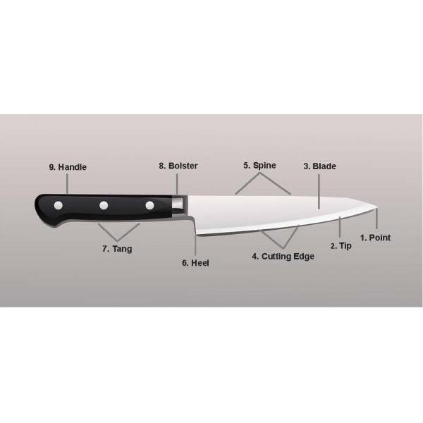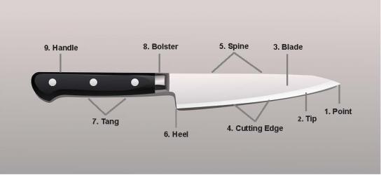 Embora as definições variem de lugar para lugar, aqui consideramos a ponta da faca como o primeiro terço da lâmina